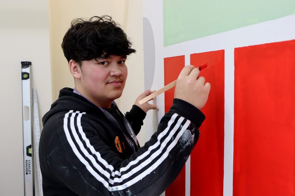 Oscar won Bronze in the Painting and Decorating competition, after taking on a challenging brief that required him to accurately measure out his design, set out each section with precision, and complete the painting under strict time conditions.